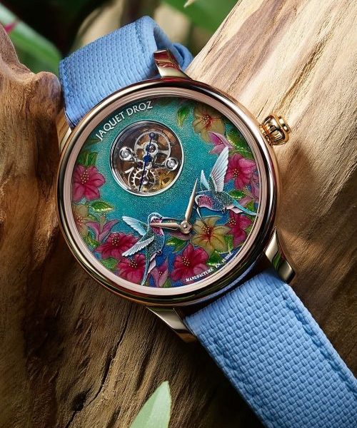 The gold has been worked by hand into an organic pattern, echoing the shape of the flower buds. The Fabergé x Gemfields Limited-Edition 18k Yellow Gold Green Guilloché Enamel Egg Objet with Twin Flower Surprise is available to purchase at selected Fabergé boutiques and online.